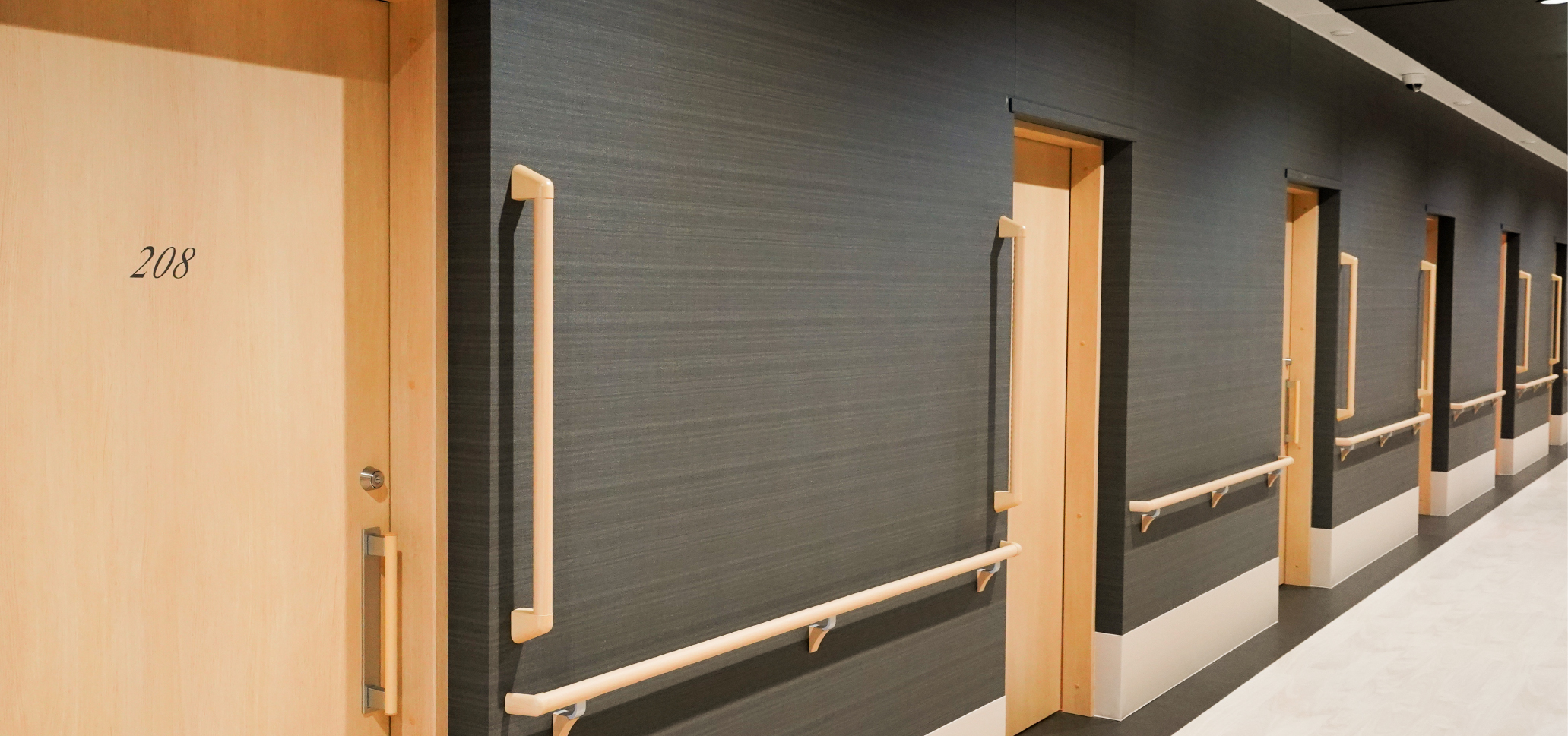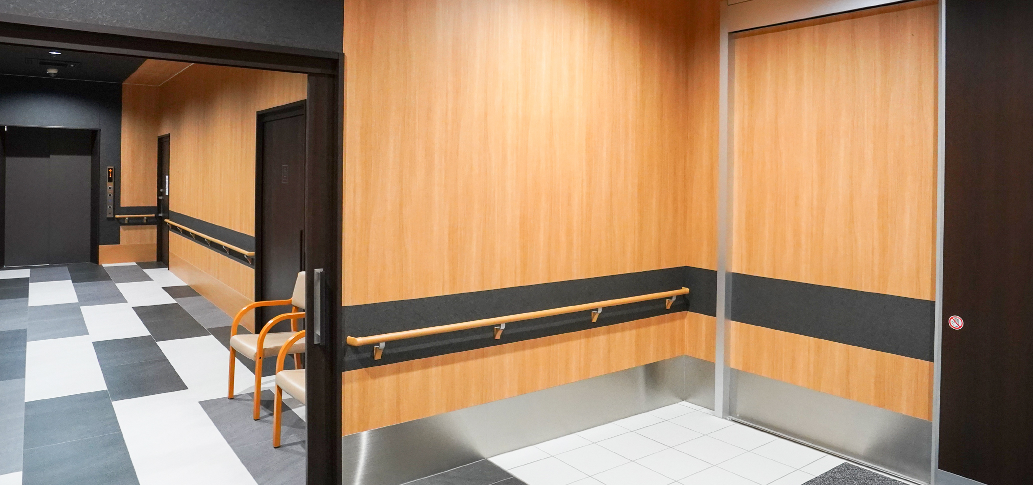 エレベーターにいる時間もリラックスできるよう、壁紙には桜の模様をあしらいました。